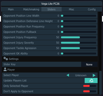 - Don’t Apply to Opponent (Sliders won’t be applied on opponent players)